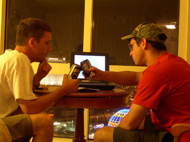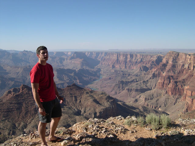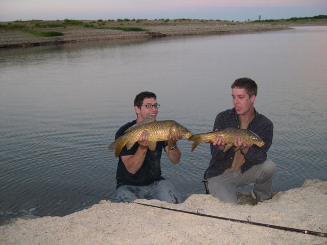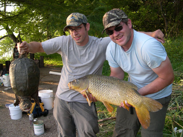 Way back in fall 2003, some of us FishGuys cooked up a crazy plan to tour the whole US at lightning speed. After months of logistical planning, 2 of us actually made it. We went 8200 miles in only 14 days, silencing the cries of naysayers and beating our own time estimates by 2 whole days. We didn't fish that often, but we saw as much of the American countryside as one could hope to in such a short period. So here goes; an abbreviated re-cap of the whole trip starting with day one. I'll add some more pictures when I can scan those Don took with his regular camera. And someday I'll make all of our video into a short movie. We left work early on Thursday, June 3, and got on the road by 4pm- dangerously close to rush hour to be traveling down I95. You really have to respect Donnie, he made a folder for each leg of the trip with printed directions, and various info about the places we would be near. That night, somehow we got lucky, met little traffic, and made it to Tennessee around 3am. We slept in the first hotel we saw after realizing we were completely exhausted. This became a common practice throughout the rest of the trip. We woke up the next day and drove all the way across Tennessee. We visited Graceland; what a hole. Yeah, sorry Elvis fans, that place sucks. Once we saw it was $18.50 to get in, we didn't even go past the welcome center. Donnie jumped into the picture area in front of these people long enough for me to snap a pic... they had to pay for theirs. We hurried out of that dump, and pushed on through Arkansas. Given such a cursory glance, it seemed like a pretty odd place. There was farmland everywhere, but the crops weren't in straight lines, the rows were squiggly, I had never seen anything like it. We could barely understand the waitress at the restaurant we stopped at. But she was as nice as could be, and we both had great meals, including chicken fried pork loin and BBQ brisket. As we left the waitress hollered, "Herbick!" After some clarification we realized that "hurry back" is a slurred out common phrase in the area.... Don drove long after I gave up and fell asleep that night, and got us respectably deep into Texas. We couldn't wait to get to Austin... Maybe some members of PFG's Philly audience already know, Town Lake in Austin, TX is considered by many to be the premier carp venue in all of North America. It was worth driving as far south as Austin, adding almost 1000 miles to our trip. Matt had planned to come cross country with us from the beginning, but his new job wouldn't give him the time off. He opted to take the time that he could, and fly to Austin to meet us. he got there early, and fished as we were driving though Tennessee and Arkansas. He met up with 2 members of the carp anglers group that we had chatted with previously online, Zach and Paul; very nice guys. They drove down from Dallas just to meet us. Here they are hauling big while don and I were in the car. Don and I arrived the next day in the early afternoon. Paul, Zach and Matt were already at the spot, waiting for us to bring some rabbit food and other carpy sundries. I had hardly dropped my bag and Zach was handing me rigs and bait that were proven winners for him at Town Lake. We all fished together, until another CAG member and one time winner of the Austin Team Championship, Richard, visited, but did not have room to fish. Paul and Zach opted to fish with Richard at another spot for the rest of the day and that night. So for the rest of the day, we fished solo. We caught plenty of fish, including my best ever at 32.5 lbs. The last picture below is of us leaving the spot. we neglected to plan for all of Matt's gear fitting into my little Honda accord along with 2 weeks of gear for Donnie and I. We finally squeezed it all in there, even Matt's "hobo engineering style" rod tube. Our second day in Austin was intense. Not long after we arrived, we met a homeless guy, named Joe, who spent the rest of the day with us. He was nice, meant well, but drank quite a bit. By the end of the day he pretty much stopped making any sense, and had made us all uncomfortable in several ways. He really liked getting into our fish pictures, talking jive nonsense politics, and philosophizing. During the day we caught several nice fish, and I caught 2 turtles. We also met the red face duck, well known to local fishermen, and Carp anglers Group members. I had seen pictures of him before we ever even dreamed of going to town lake. When we finally left, we had to leave Joe there, passed out on the ground. Although it was difficult to leave Austin and the likely prospect of 40 lb carp we rolled out the next morning West through Texas into New Mexico. We drove all day and night, got a sleazy hotel, woke up and did it again. We drove and drove across Arizona.