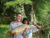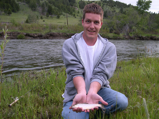 hour traffic jam. The Columbia river is beautiful. We saw springs shooting from canyon walls here and there as we followed it from Portland across most of Oregon, though the southeast tip of Washington State and into Idaho. Our camp site was in Lewiston, ID which is across the river from Clarkston, WA. Around 1200 miles of our trip followed the Lewis and Clark trail. The campsites were close to the water, but not close enough to fish next to our tent. We caught some fish, including two species that were new to us, a mountain whitefish, and a blue sucker; no sturgeon though.
