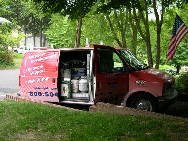 Almost a year ago, and before any of us from fishguys.org had ever been in a tournament, Matt and I heard that for the first time ever, the World Carp Championship was coming to the USA. We immediately saw this as a golden opportunity as we were not likely to be able to travel to France or Romania any time soon for fishing. So we spent months planning, got all the extra gear we needed, and saved up the $2500.00 entry fee. It was an exciting but also intimidating endeavor. The tournament lasts for 5 days, 115 hours straight. Teams were to be placed on islands, and deep in the wilderness. We would have to find a way to safely store our fish for up to 12 hours, without risking injury. We knew that we'd be up against the greatest anglers in the world, on a prolific but challenging water, the St. Lawrence River in upstate NY. 103 teams from 29 countries showed up and fished their best. We couldn't be more happy with every moment of the event. There were struggles, triumphs, and new friends from far away places... Below is a pictoral account of the trip from start to finish. First, we need to recognize our only sponsor who was crazy enough to lend us a van, www.dugancom.com. Please visit them for any of your web and network related needs. So here is the dugancom van, ready for takeoff. Inside are hundreds of hooks, probably 50 lbs of lead, 11 rods, 200 safety clips, 800 lbs of bait, a turkey fryer to cook the bait, and tons of other potential necessities. Half of our strategizing done by the time we drove off. We stopped in the Poconos to do some leisurely fishing and clear our minds before hand. Pines Lake is right down the street from my parents vacation home. We have fished this lake many times. We usually catch one giant fish between us, and that's it. This night things were different. We landed 7 walleye over 20 inches, all thin, but long. Matt caught a nice largemouth, and I caught my best pickerel. It's not big, but I have been looking to catch a better Pickerel for a while and this will do. If this luck kept up, we thought we'd be in good shape!